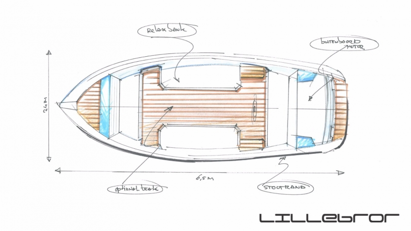De Lillebror 65 wordt ook gebouwd in 5mm en delen van de binnenkant in 4mm. Het 5 mm geeft extra sterkte voor de romp ivm het snelle vaarkarakter van de tender. De gewenste motor wordt dan onder de achterklep geïnstalleerd.